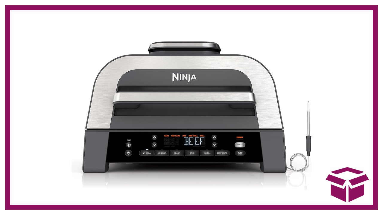 The Ninja Foodi Smart XL Indoor Grill is a versatile kitchen appliance that lets you grill, air fry, roast, bake, broil, and dehydrate all in one machine. It includes a smart thermometer that helps you cook meats to the perfect doneness without the guesswork. With its large capacity and powerful heating system, it’s designed to deliver outdoor-style grilling results right on your countertop.