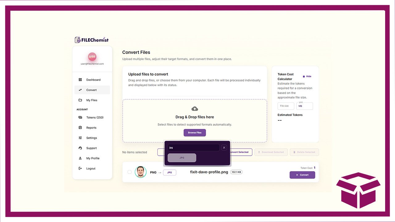 As a browser-based app, File Chemist eliminates the need for the many conversion apps you would have to buy and install on your Mac or PC to get even a fraction of its file management. File Chemist is drag-and-drop for exceptionally simple use, and conversion takes only minutes. File Chemist removes your originals from its system within 24 hours for privacy. It works on a token-based system, and this $30 StackSocial purchase gives you 2,500 tokens to start with. (Example — converting a 10GB file costs 60 tokens.) Files getting lost in translation is a thing of the past when you use File Chemist.